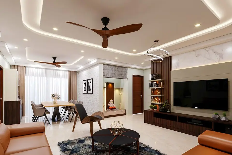 Contemporary and Elegant habitat for a Young Couple. The Interiors of the house are done with aesthetic use of Pastels and Browns that give an earthy and timeless look to the house.